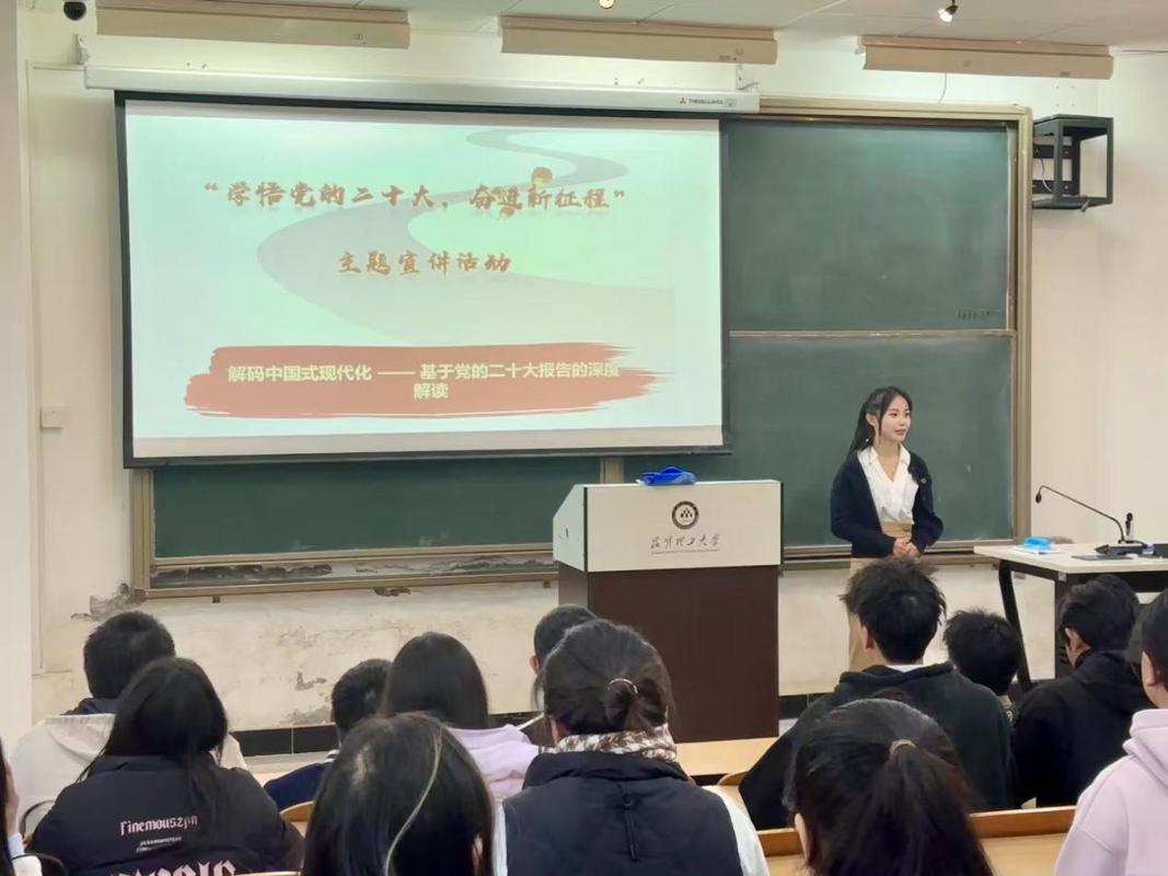 此次宣讲帮助同学们厘清了“现代化=西方化”的认知误区,进一步加深了对中国式现代化的理论内涵、实践路径和世界意义的理解。下一步,“学悟党的二十大,奋进新征程”宣讲团将继续深耕理论宣讲阵地,结合不同学院专业特色优化宣讲内容、创新传播形式,走进更多班级、社团与科研团队,让党的二十大精神真正入脑入心,持续引导广大青年学子将个人理想融入国家发展大局,以昂扬姿态在奋进新征程中书写青春答卷。