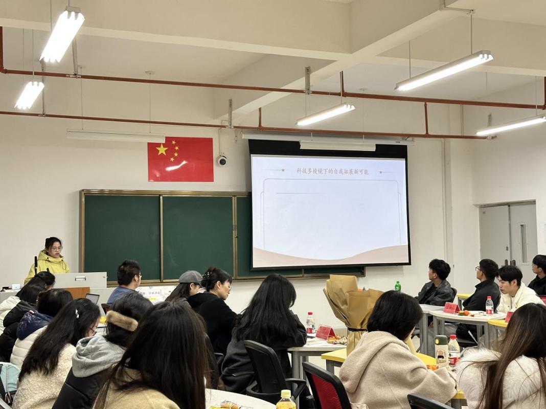 宣讲伊始,马克思主义学院曾丽同学以《锚定自我:不确定时代的精神扎根与生长之道》为题,紧扣党的二十大报告中“丰富人民精神世界是中国式现代化的本质要求之一”的重要论述,开篇点题指出,在科技浪潮席卷、信息喧嚣不止的当下,青年一代更需以精神为锚,在时代变局中实现向内扎根,向外生长。