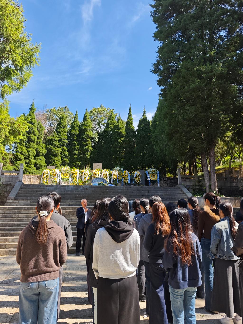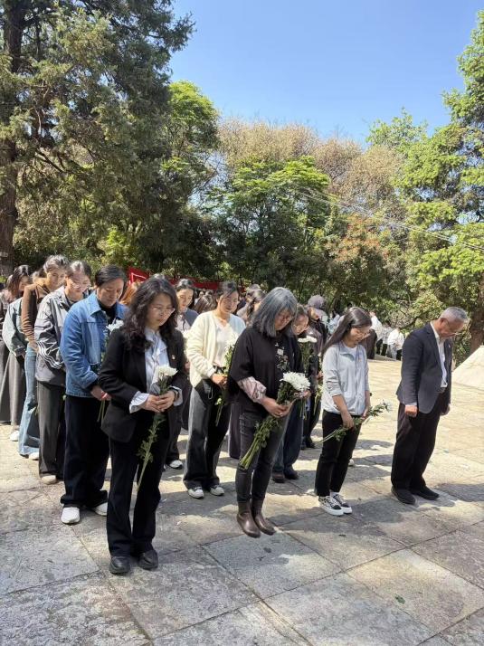 活动当天,参与人员身着素色正装,佩戴党员徽章,怀着崇敬之心齐聚烈士陵园。上午10时,祭扫仪式正式开始,全体人员列队肃立,向革命先烈敬献花篮圈,表达对先烈的深切缅怀与崇高敬意。昆明理工大学马克思主义学院党委书记殷国禹出席仪式并发言。