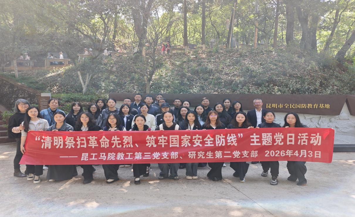 为深切缅怀革命先烈的丰功伟绩,传承红色基因,厚植爱国情怀,进一步加强党员党性教育,引导全体党员与入党积极分子铭记历史、坚定理想信念,2026年4月3日,昆明理工大学马克思主义学院教工第三党支部与研究生第二党支部全体党员、入党积极分子,前往黑龙潭公园王德三、马登云、吴澄革命烈士陵园,开展“清明祭扫革命先烈、筑牢国家安全防线”主题党日活动。